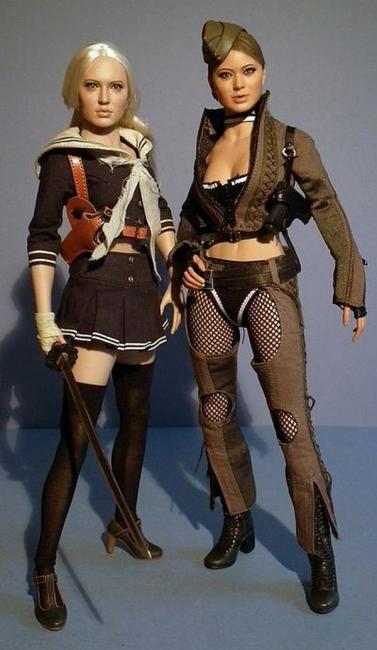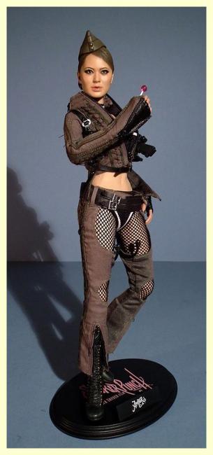 The outstanding sculpt of Emily Browning as Babydoll is by Yulli and it captures almost perfectly her fragile innocence, so this sculpt by Song Hye Hyun manages to do the same for Jamie Chung as Amber being worthy of standing next to her comrade. Amber certainly comes across as a more self-assured ballsy character in the dream sequences of the movie that she briefly appears in, and that cockiness is exhibited in her slight smile/smirk and the inclusion of her lollipop holding hand. That feature alone shows that this is a gal who try is not to take things too seriously.