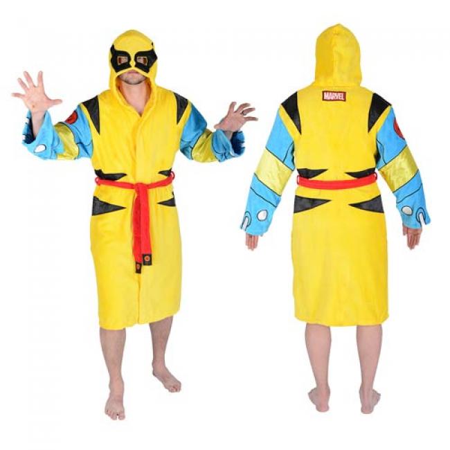 Assume the guise of Marvel s antihero when you wear this super-comfortable Wolverine Hooded Cotton Bathrobe! The robe is made from 100% cotton, so it is got a great feel, and the hood is designed to look like Wolvie s mask, with eye slits to see through. Wear it when you wake up or right after a shower - either way, you ll feel stylish and warm. The bathrobe fits most adult males measuring 5-feet 6-inches to 6-feet 2-inches tall.