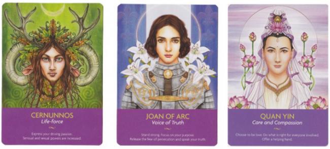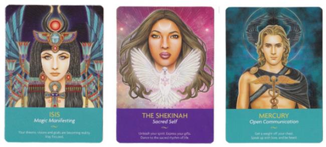 The deck balances male and female energies, and includes traditional masters like Lord Buddha and Mother Mary, Earth-based deities like Gaia and Cernunnos, and modern favorites like Sanat Kumara, Lady Venus, and Saint Germain.