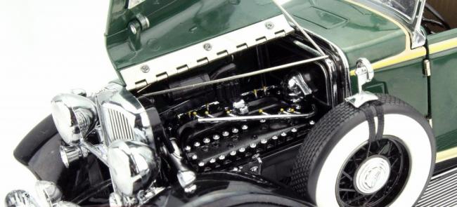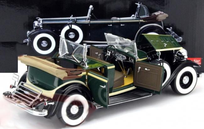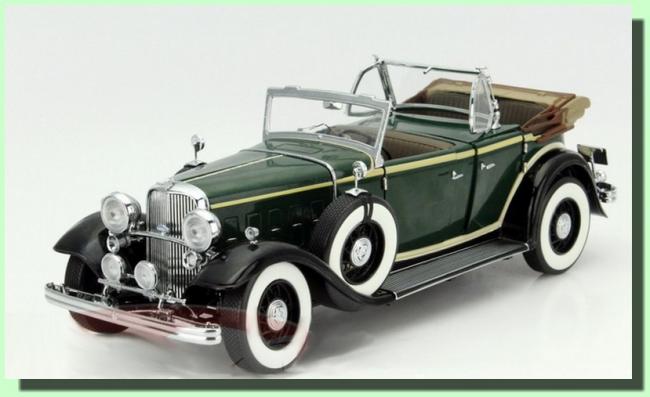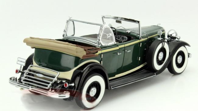 Model auta pro sběratele Ford Lincoln 1932 v khaki zeleném laku vytvořená podle předlohy originálu designerským týmem v měřítku 1:18 při věrném zachování detailu a kvality zpracování.