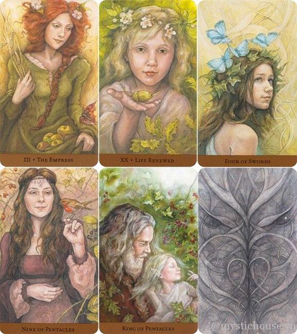The Tarot of the Hidden Realm has 78 expressive, intriguing, and borderless images. Rather than relying on traditional tarot symbols, it strips back its images to the raw elements of nature and the fae. The art is full of life, movement and feeling.