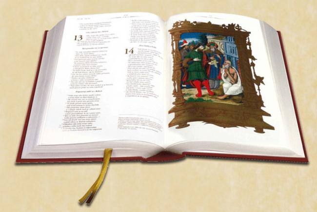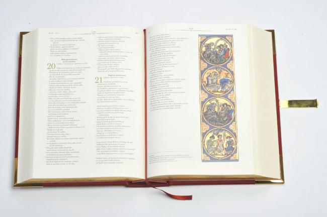 Grafické zpracování, obsah a reprodukce iluminací (bez zlatotisku) jsou totožné s unikátní ZLATOU BIBLÍ.