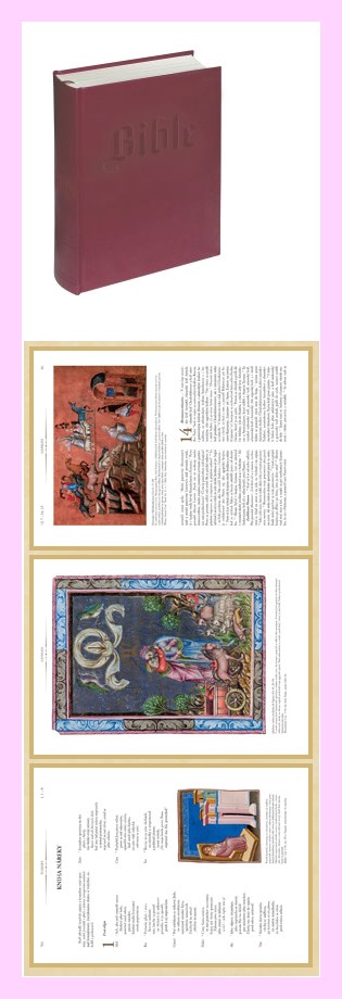 V BIBLI najdete nádherné reprodukce iluminací z historických rukopisných biblí, například z bible Václava IV. (z let 1389-1399), Neapolské bible (2. pol. 14. stol.) či z vídeňské Historické bible z Urachu (1463).