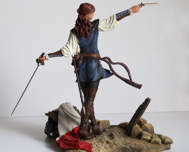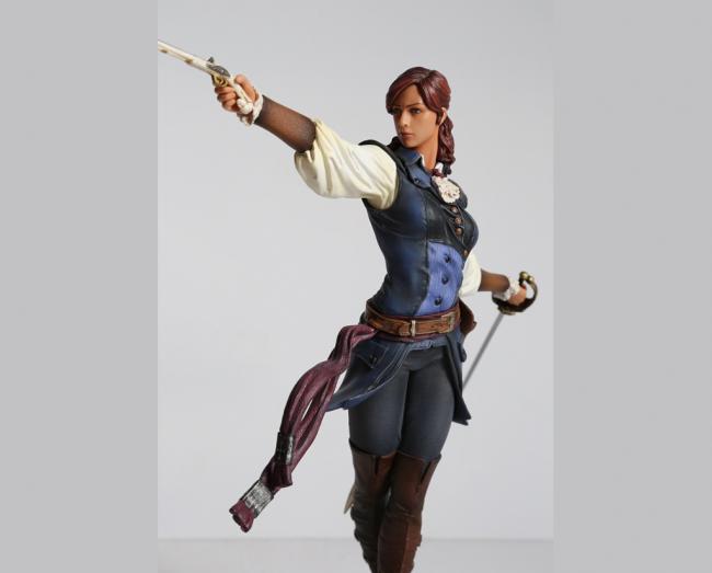 Elise is the very first female figurine and first Templar based on the next episode from Assassins Creed Unity showing the Templar, as she points out her eyes through her gunsights, holding out her gun and hiding her sword in her back.