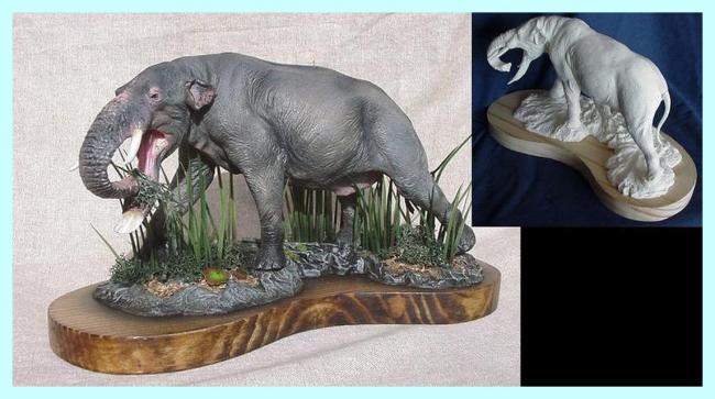 A realistic replica modeled after the famous "shovel-tusked" mammal.
