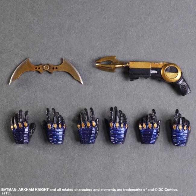 In this San Diego Comic-Con 2015 Exclusive limited color version, we have highlighted the fine details with metallic paintwork in bright blue and gold. A cape that more realistically replicates the movement of cloth, and interchangeable hands with different textures both add to the dynamic expression achieved when posing; add weapon pieces to the mix, and the collector can enjoy BATMAN action poses at their best.