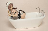 Ever the determined maid, this Charm Maid finds herself bent at a 90-degree angle wearing as little clothing as possible in an unblemished bath tub with silver colored faucets. Not only does this Daydream Collection Charm Maid Black Version 1:6 Scale Statue feature a maid in black lace, but that clothing comes off, too! The bath tub serves as the base of this 7-inch tall resin statue, and the maid also includes black high heels to go with her maid outfit.