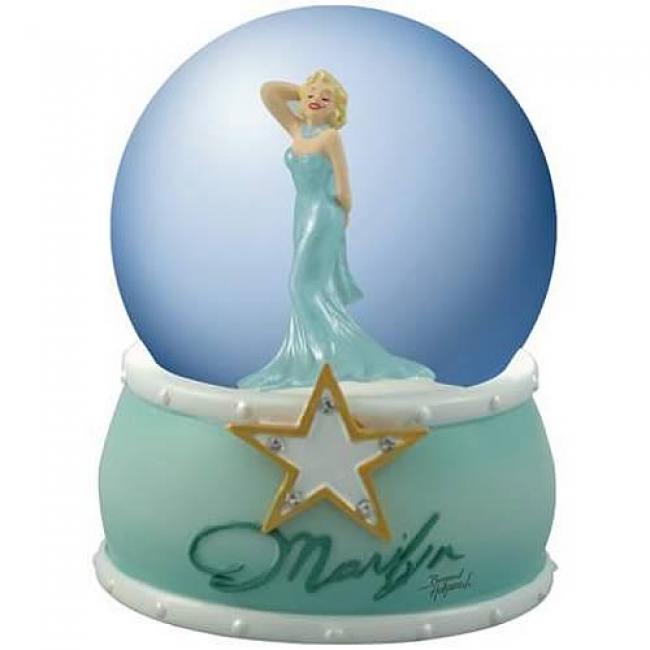 Marilyn… that is all you need to know. This Marilyn Monroe Water Globe shows the captivating Hollywood beauty in a stunning turquoise dress above a matching base that spotlights her name. Order yours now! Ages 13 and up.