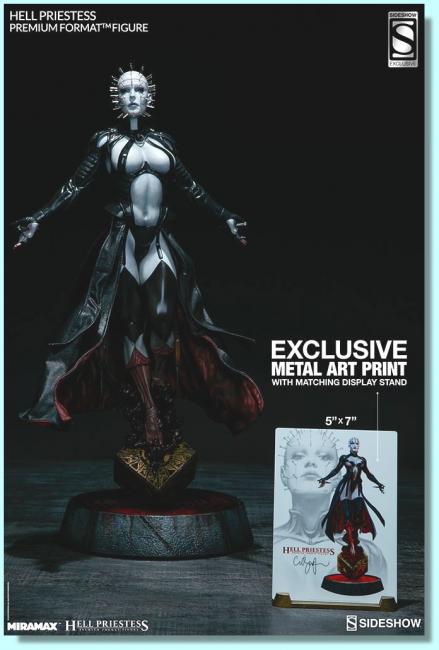 The Sideshow Exclusive Hell Priestess Premium Format Figure comes with a metal display plate that features the 2D conceptual art, along with Clive Barker s printed signature.